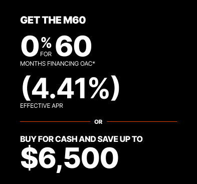 Representative finance example for the M7060: $65,551.37 financed at 0% (4.41% effective APR which factors in $6,237.18 in non stackable cash that cannot be combined with finance offers) equals $999.55 monthly for 60 months. $6,663.65 down payment required. Cost of borrowing is $6,237.18 for a total obligation of $65,551.37. Financing available on approved credit. Prices and payments include freight and other applicable fees (including environmental fees, administration fees, set-up fees, and dealer fees on the model specified). Rebate of $5,200 available on cash purchases of a new M7060 Rops only. Rebate of $6,500 available on cash purchases of a new M7060 Cab only. Offer valid until 03-31-2026.