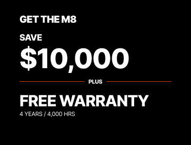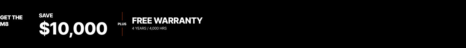 Discount shown available on a new and previously unregistered M8 is $10000.00. Offer cannot be applied on past transactions, and has no cash surrender value. The 4 year/4,000h warranty on M8 offer is only valid in Canada on products distributed by Kubota Canada Ltd. Discount(s) apply before tax. Offer cannot be applied on past transactions, and has no cash surrender value. Offer valid until 03-31-2026.