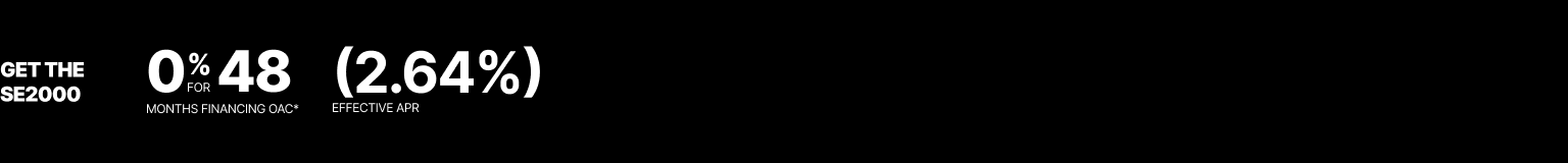 Representative finance example for the SE2000: $19,621.93 financed at 0% (2.64% effective APR which factors in $963.90 in non stackable cash that cannot be combined with finance offers) equals $386.18 monthly for 48 months. $2,059.61 down payment required. Cost of borrowing is $963.90 for a total obligation of $19,621.93. Financing available on approved credit. Prices and payments include freight and other applicable fees (including environmental fees, administration fees, set-up fees, and dealer fees on the model specified). Offer valid until 03-31-2026.